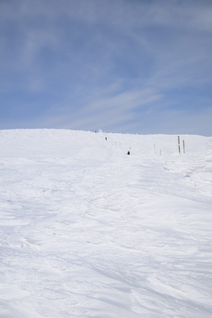 スキー場の端を歩いて下山します。