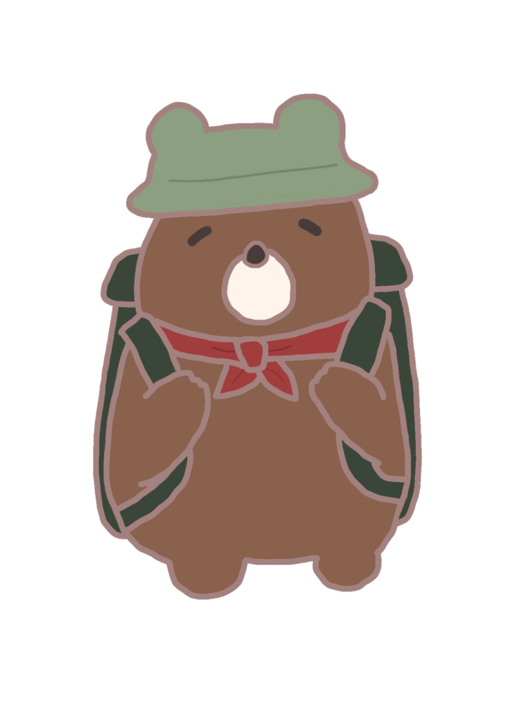 クマさんはオコちゃんの友達で、体は大きくても心はとっても優しいのんびり屋さん。オコちゃんの影響で、登山に興味を持ち始め、うっちーとも仲良くなりました。登山のペースはゆっくりですが、自然と一体化する時間が大好き。これからも、登山の楽しさをみんなに伝えていけるように一緒に頑張っています。