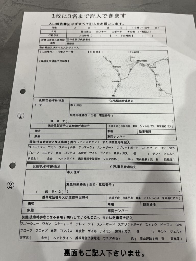そのために、ここで登山計画書を記入・提出。