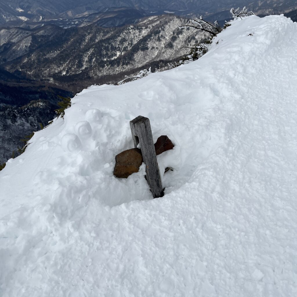 雪に埋もれた山頂標識!?剣ヶ峰に到着